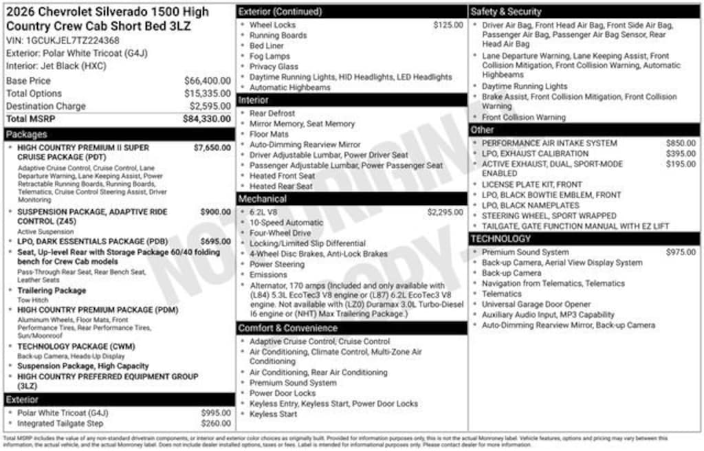 Price includes the following incentives, some customers may not qualify. See dealer for details.: $1750 - GM Bonus Cash. Exp. 03/02/2026 $2500 - Chevrolet Consumer Cash Program. Exp. 03/02/2026 10-Speed Automatic, 4WD, Black Leather.